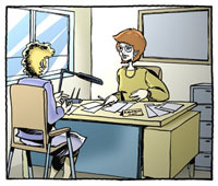 Cuando Carolina entra, Marisol Carvajal, la jefa del personal, está leyendo unos papeles. Su mesa de trabajo está llena de informes, formularios y cartas. En esta época del año hay mucho trabajo. Para la temporada de Navidad y Reyesla empresa necesita más personal. Pero ése no es el único problema que tiene Marisol. Esta mañana, después de la reunión con los jefes de departamento, José Iribarne le habló muy claro.