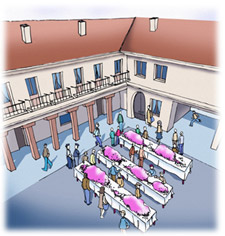 Las mesas para el concurso están preparadas. Sobre los manteles blancos hay montones de flores malva, las rosas del azafrán, que guardan en su interior unos valiosos estigmas.