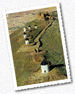En el horizonte aparece la línea de molinos de viento sobre la colina y pienso en Don Quijote, el famoso héroe de La Mancha. Hoy también se celebra el Día Mundial de los Molinos de Viento.