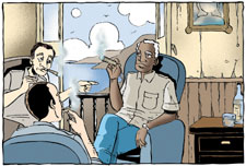Los hombres visten todos guayaberas y fuman olorosos tabacos. Priscilla exclama horrorizada: