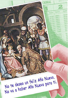 Es una postal feísima. Pepe Rey la abre. Está escrita a máquina y pone: «No te deseo un feliz Año Nuevo. No va a haber Año Nuevo para ti».